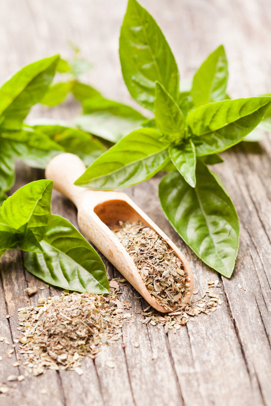Dried Basil in Hand-Painted Ceramic Jar - 10g
