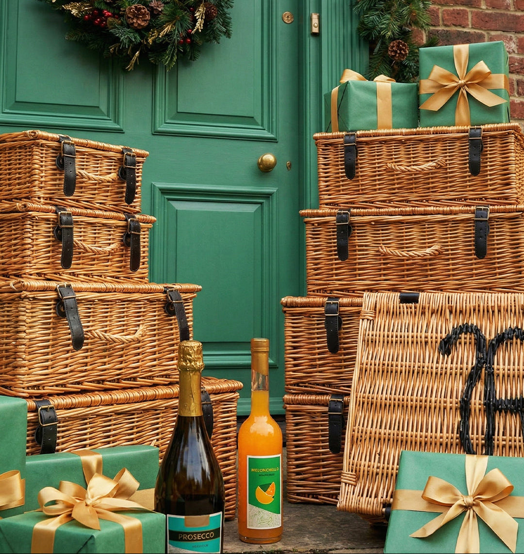 All Hampers are packed in our beautiful Rossella Jute Bags. Handmade Wicker Basket upgrade available.